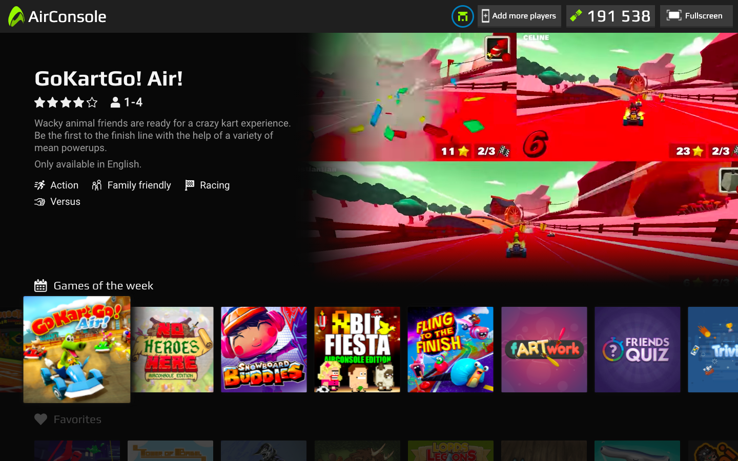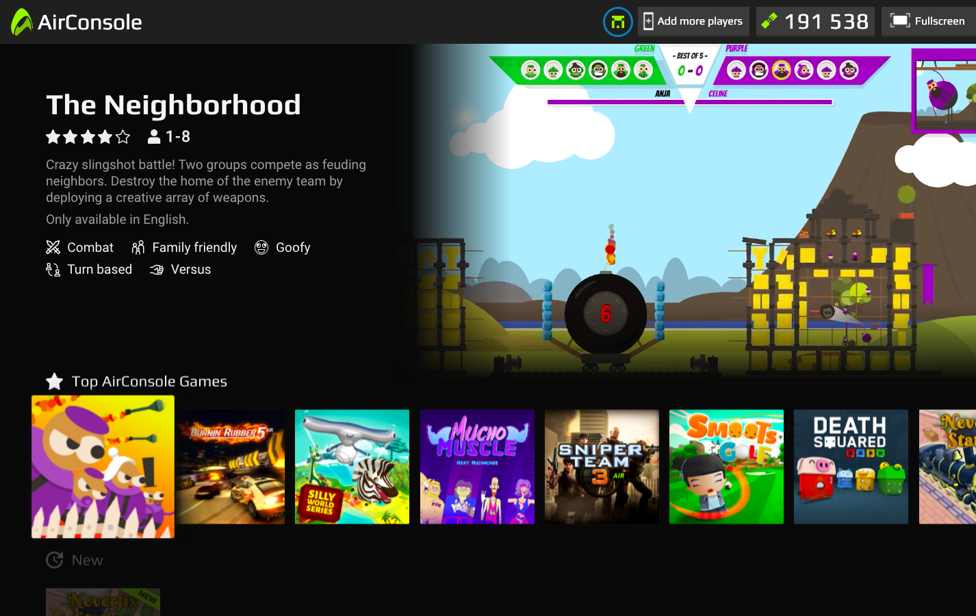 V současné době je na AirConsoli přes 140 herních titulů. Hry jsou průběžně přidávány nebo vylepšovány. Přikládáme screenshoty z vybraných her a obecně z AirConsole.