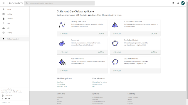 Pokud chce někdo „instalovat“ GeoGebru a pracovat offline, pak si může stáhnout různé moduly. Zajímavostí je GeoGebra AR (AR = augmented reality, rozšířená realita v překladu). Ale o tom někdy později.