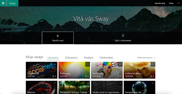 Po delší době přicházíme s druhým dílem, ve kterém se zabýváme prezentováním v online nástrojích. Dneska si přiblížíme Microsoft Sway, který je svým způsobem atypický a hodí se hlavně v případech, kdy potřebujeme rychle vytvořit prezentaci. Pokud máte raději vzdělávací videa, podívejte se na naše video o prostředí Microsoft Sway I. díl – tvorba prezentace, text a obrázky