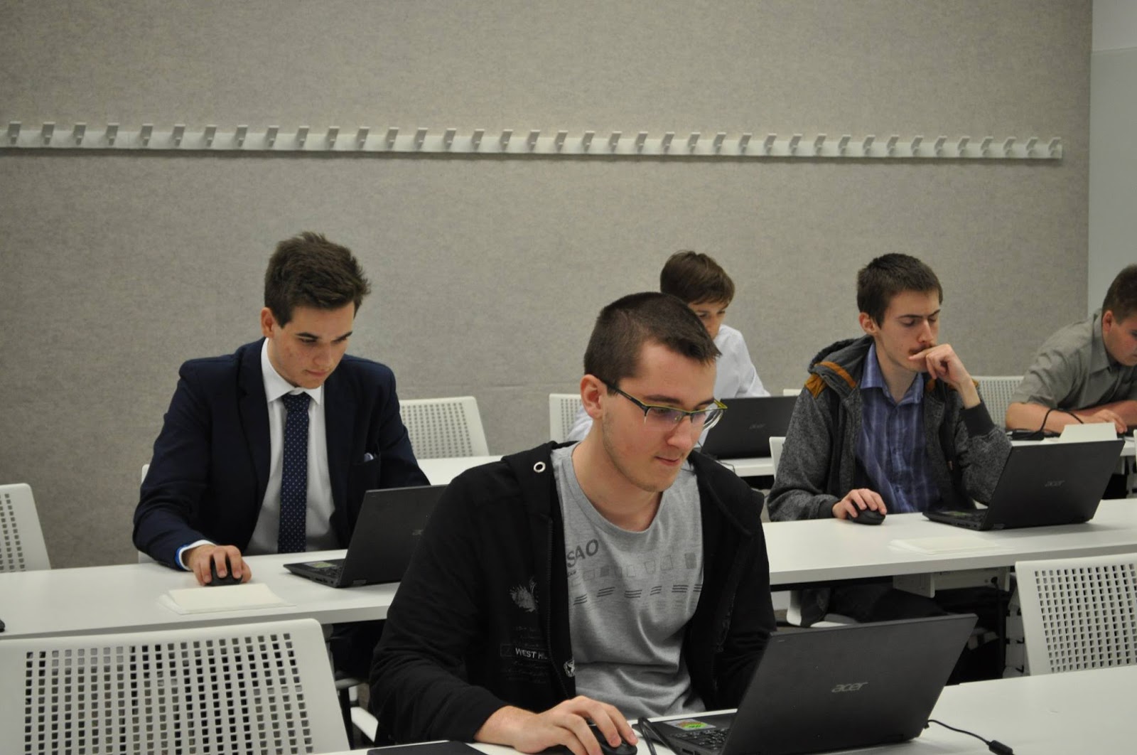 Ráno jsme vyjeli vlakem už v 6:50 minut, abychom byli v Praze včas. Na místě jsme byli téměř s hodinovým předstihem, ale raději dříve než později. Byli jsme uvítáni studenty STC a usazeni v přednáškové místnosti. Postupně se hlavní místnost zaplňovala studenty a jejich doprovody jak z České tak Slovenské republiky. Do finále kategorie B se probojovalo 16 nejlepších žáků obou států a celkově v obou kategoriích soutěžilo 2125 žáků ze 147 škol. Všichni, kdo se dostali do finále, byli vítězi vzhledem k velké účasti.